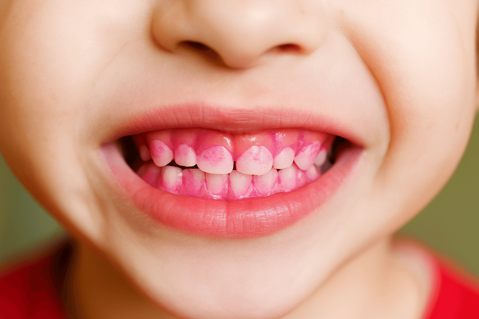 Przeprowadzono test z tabletką wybarwiającą . Efekt z mycia zębów klasyczną szczoteczką po lewo, uBrush po prawo